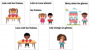 Mots travaillés (en dehors des mots-outils) : banane, chocolat, fraise, gâteau, bonbon, glace